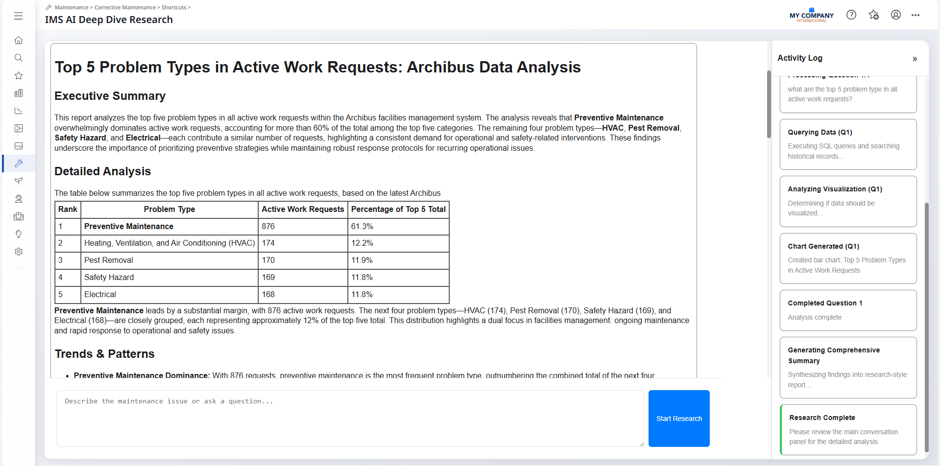 Quick answers for maintenance staff and managers — live data, common questions, and instant insights.